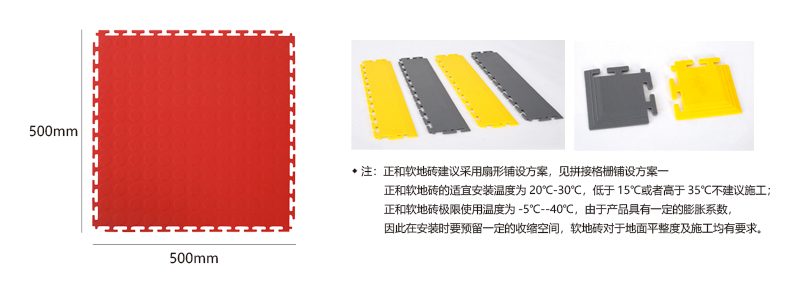 軟質(zhì)絕緣地板能夠?qū)⒚總獨立的地板快速拼裝成整體地面,專利型鎖扣結(jié)構(gòu)連接能力更強,可承受叉車的來回碾壓。施工過程中無需膠黏劑等材質(zhì),具有施工簡單快速、色彩絢麗、美觀大方、可移動性強、可重復使用等特點。